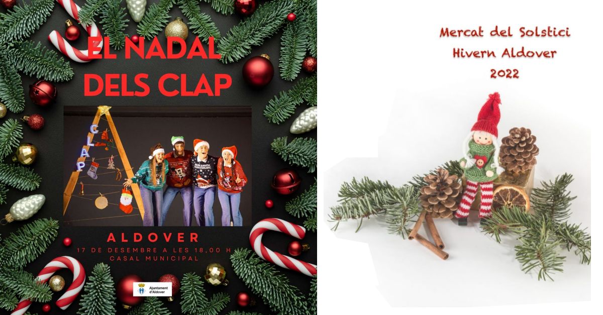 - 18.00 h – Espectacle «El Nadal dels CLAP». A càrrec de La Companyia. Lloc: Casal Municipal. Organitza: Ajuntament d’Aldover.