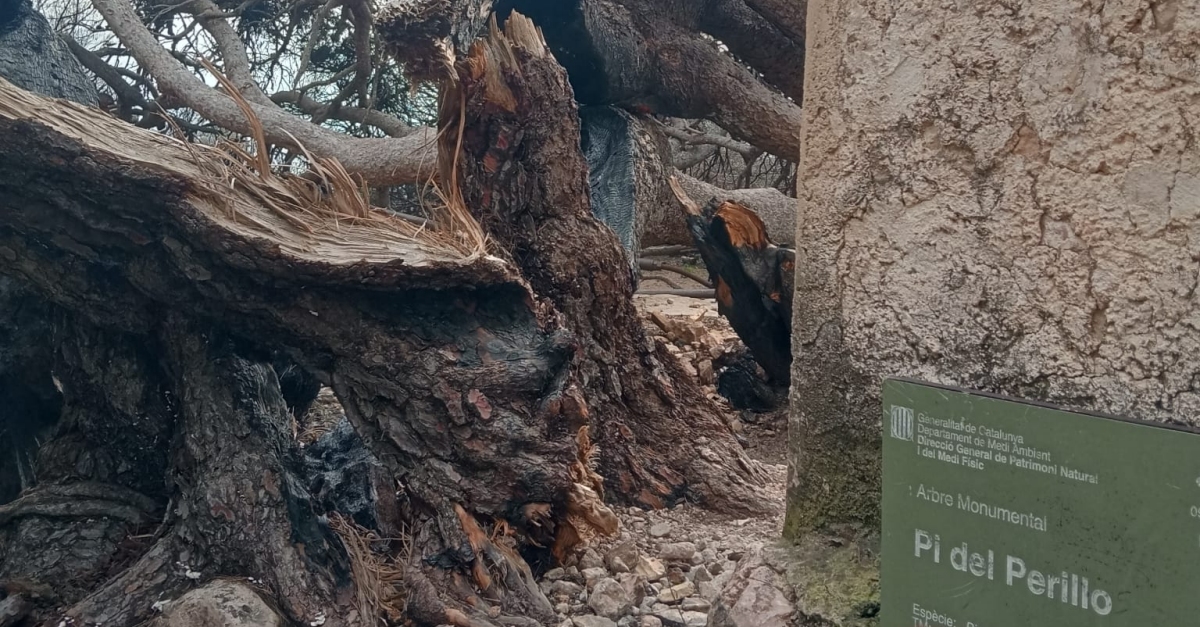 El Pi del Perillo, arbre monumental afectat per l’incendi del Parc Natural dels Ports del 2025.