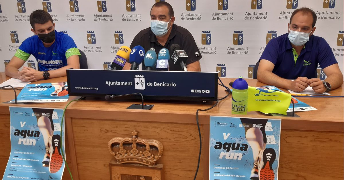 El regidor d’Esports de l’Ajuntament de Benicarló, Fernando Jovaní, acompanyat del president del Club Triatló Basiliscus, Vicent Prats, i el director tècnic de la cursa, Jesús Beltrán, va presentar ahir la cinquena edició de l’Aquarun, una cursa de caràcter eminentment popular que es reprén després de tres anys amb la voluntat de fomentar la pràctica de l’esport a l’estiu i de dinamitzar la zona portuària de Benicarló.