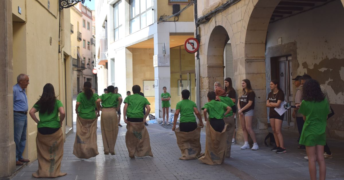 Alumnes participant en una cursa de sacs