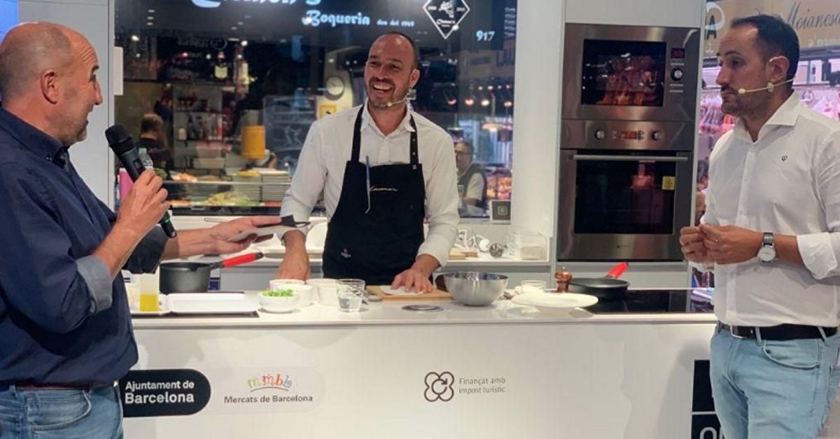 Al Mercat de la Boqueria de Barcelona es va organitzar un showcooking per promocionar el llagostí, la sèpita i l’orada ebrenca