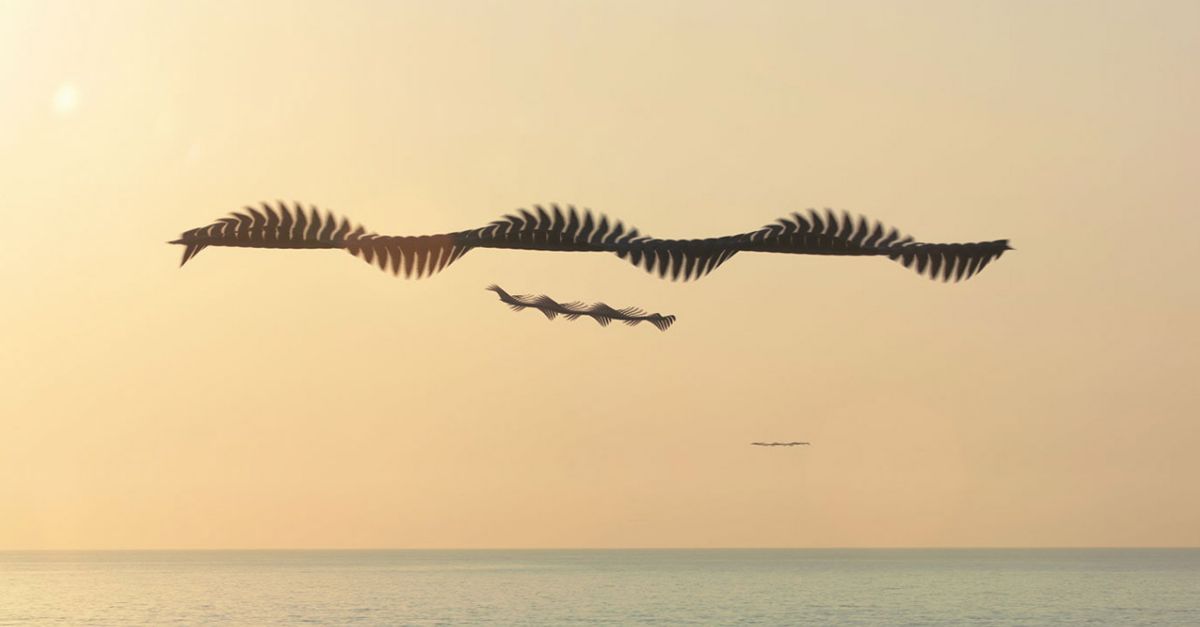 Ornitografies ens mostra per primer cop la bellesa del vol de les aus com no l’havíem vist mai. Gràcies a mostrar diversos segons en una sola imatge, se’n desdibuixa la silueta de l’au al cel per donar lloc a unes inspiradores formes orgàniques que ens poden recordar altres estructures o fenòmens de la natura.