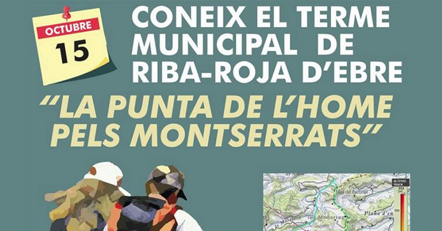 Aquest diumenge 15 d’octubre, els veïns i veïnes i els visitants de Riba-roja tenen una nova oportunitat per conèixer l’entorn d’aquest terme municipal amb la caminada “La Punta de l’Home pels Montserrats”, una iniciativa que forma part del pla estratègic Impulsa 20.30, que té com a objectiu dinamitzar l’activitat del municipi en tots els àmbits i, en aquest cas concret, augmentar l’oferta esportiva local.