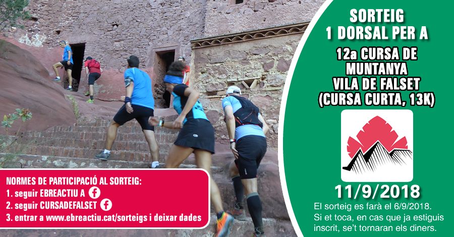 Sorteig d’1 dorsal per a a la 12a Cursa de muntanya Vila de Falset (cursa de 13K) de l’11/9/2018.