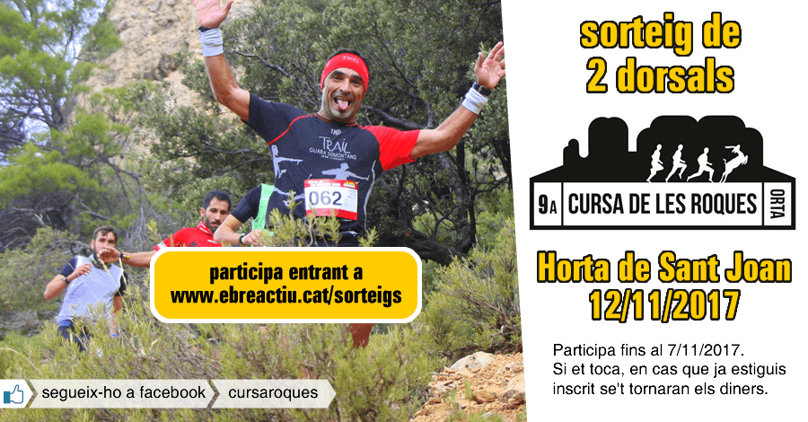 Sorteig de 2 dorsals per a la 9a Cursa de les Roques d’Horta de Sant Joan del 12/11/2017.