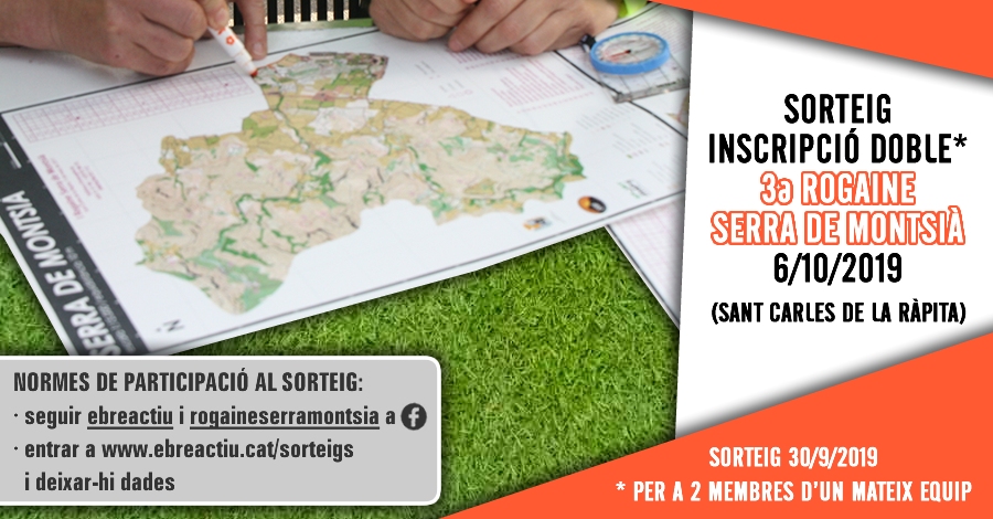 Sorteig d’una inscripció doble* per a la 3a Rogaine Serra de Montsią de Sant Carles de la Rąpita del 6/10/2018.
