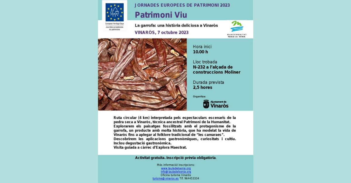 Inscripciones en info@tauladelsenia.org i turisme@vinaros.es