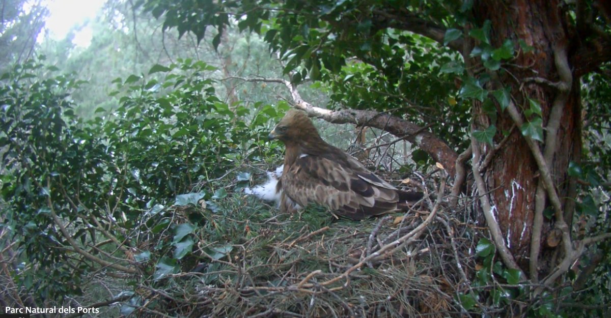 El polluelo nació el pasado 3 de junio, el único que abrirse los dos huevos de la puesta de este año en el nido de águila calzada y del que se ha podido seguir la evolución a través de una cámara webcam instalada lada en el Parque Natural de Els Ports