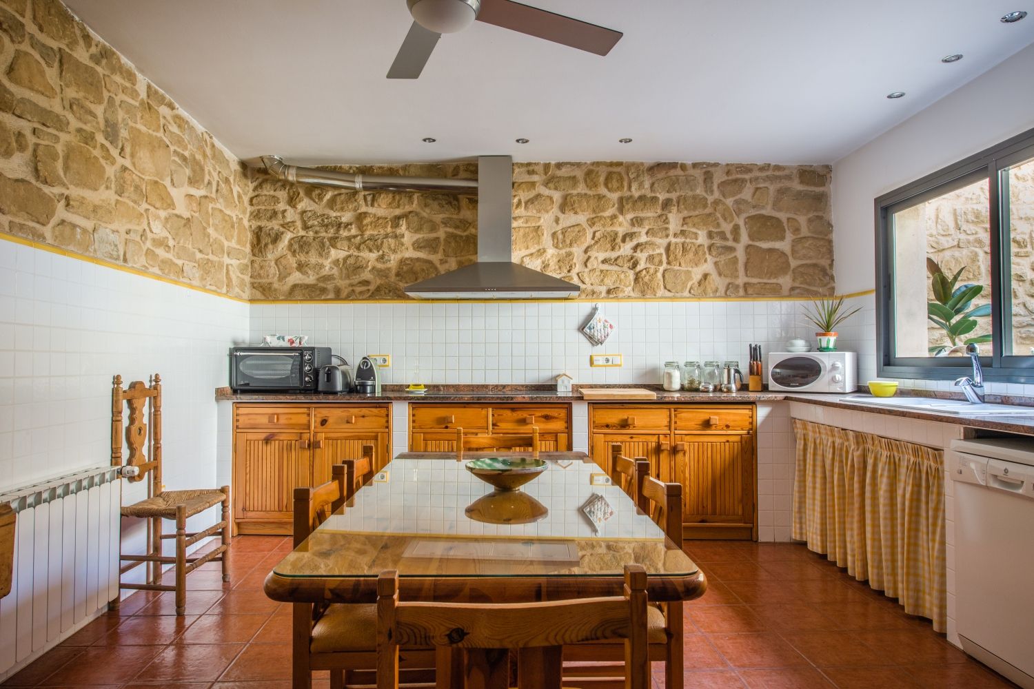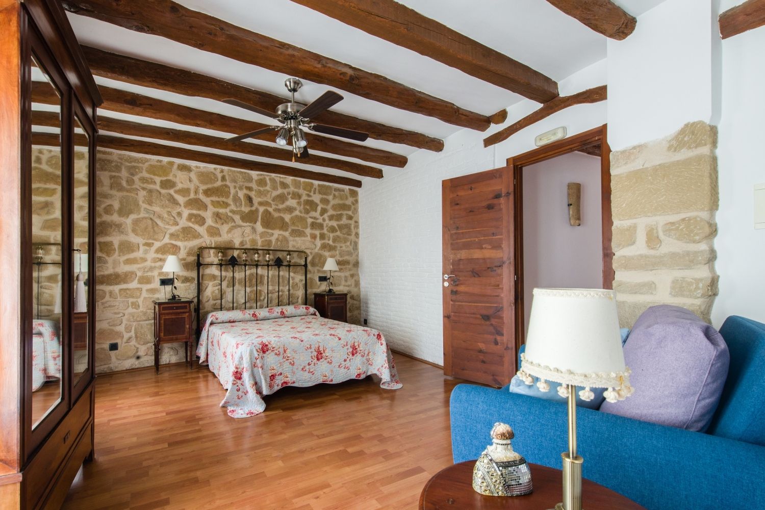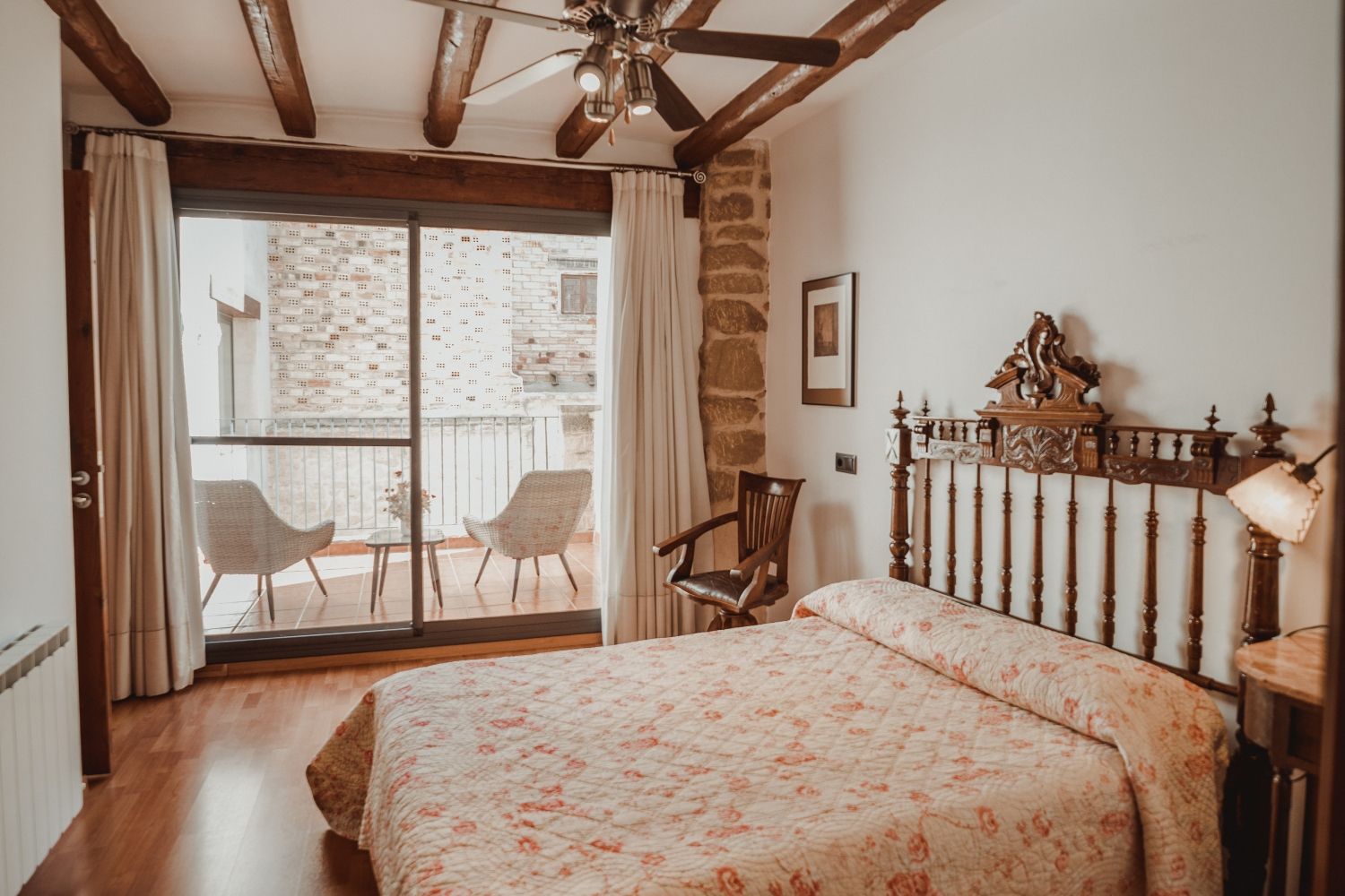 Con capacidad para 10 personas, dispone de sala de estar, biblioteca con zona de descanso para la lectura, cocina equipada a disposiciķn de los huéspedes, sala de reuniones y jardín interior. Las cinco habitaciones reciben los nombres de parajes de término municipal (Vilassos, Serrafites, Aucalans, Molandins y Mudčfer), son amplias y con predominio de espacios blancos, luz natural, suelo de parquet, baņo propio y mobiliario de anticuario. La carpintería de la casa es de madera de tea, proveniente de la vigas del tejado de una capilla de la iglesia de Gandesa datada de principios de siglo XVIII.
