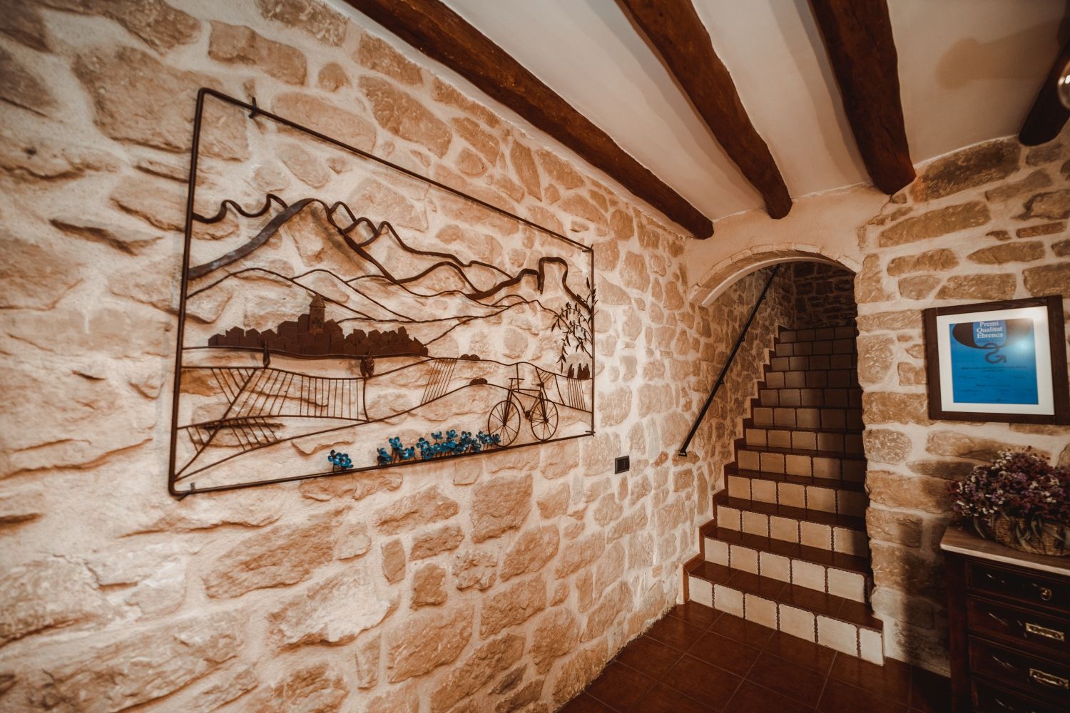 La casa, datada de 1853 y bombardeada durante la guerra civil, abriķ sus puertas a finales del aņo 2004, después de un minucioso trabajo de rehabilitaciķn que la hizo merecedora del premio Qualitat Ebrenca a la mejor casa construida de iniciativa privada de las Terres de l’Ebre.