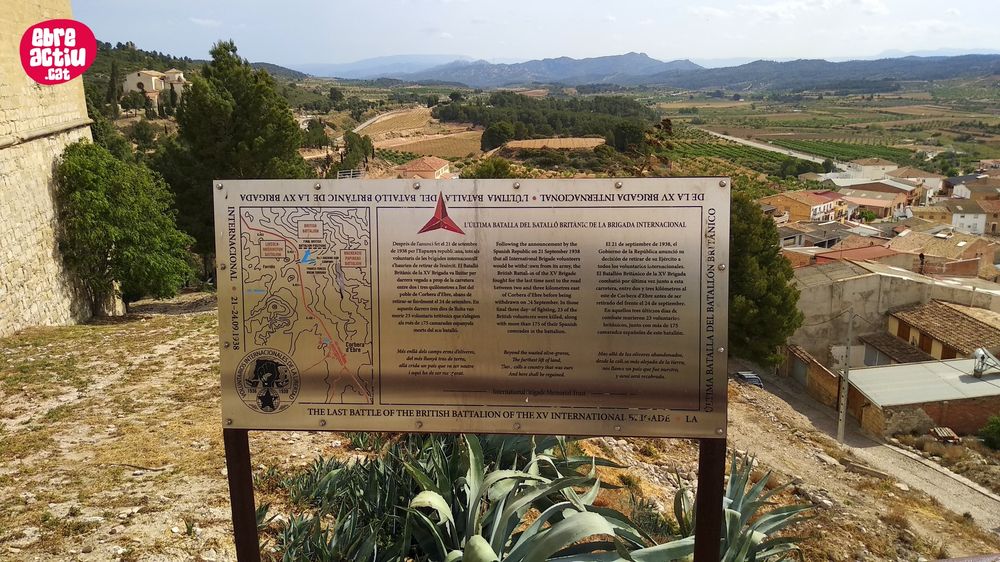 «El Poble Vell de Corbera d’Ebre, situado en lo alto de la colina de la Montera, se convierte en un símbolo claro y evidente de la tragedia de la guerra. Con una población en 1938 cercana a los 2.500 habitantes, sus calles y casas en ruinas son, hoy en día, un testigo mudo de la violencia y de las brutales consecuencias de los bombardeos aéreos y de artillería que sufren durante toda la batalla las poblaciones civiles de la zona.»