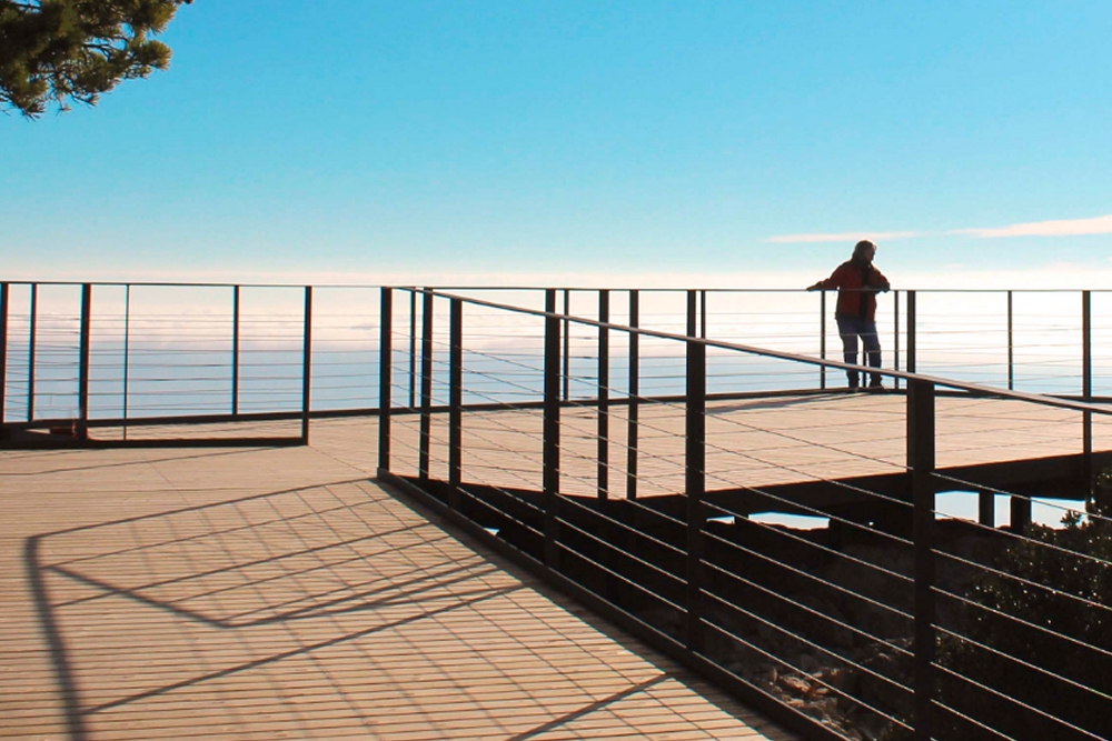 En 2016, se inauguró la pasarela y la plataforma de madera de 70 m2, respetuosa con la orografía de la cima, y más accesible a todos. Desde aquí, los visitantes pueden disfrutar de una magnífica vista del último tramo del valle del Ebro y de las laderas interiores del Parque Natural dels Ports. Junto a la nueva infraestructura se ha habilitado una plaza de aparcamiento para personas con movilidad reducida.