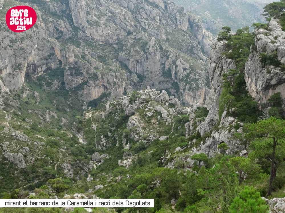 Aquesta ruta de senderisme pel parc natural dels Ports transcorre per la comarca del Baix Ebre sortint des de la zona de la Caramella per a fer el recorregut del KM vertical de Roquetes que va fins al cim de Caro per fer la baixada pels bassis de Caro, les moles del Moro i Castellona, forat de l’Aire (o de Migdia) i coll de la Garrofera.