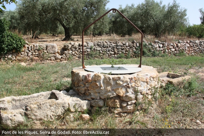 Des de la font es podia observar una excel·lent panoràmica de tota la planúria, amb la serralada del Port al fons. En aquest punt ja s’havia fet hora de dinar, pel que els participants van tornar cap a Godall. Després de dinar, una darrera visita a les oliveres mil·lenàries de Godall, al costat de la Font de les Piques.