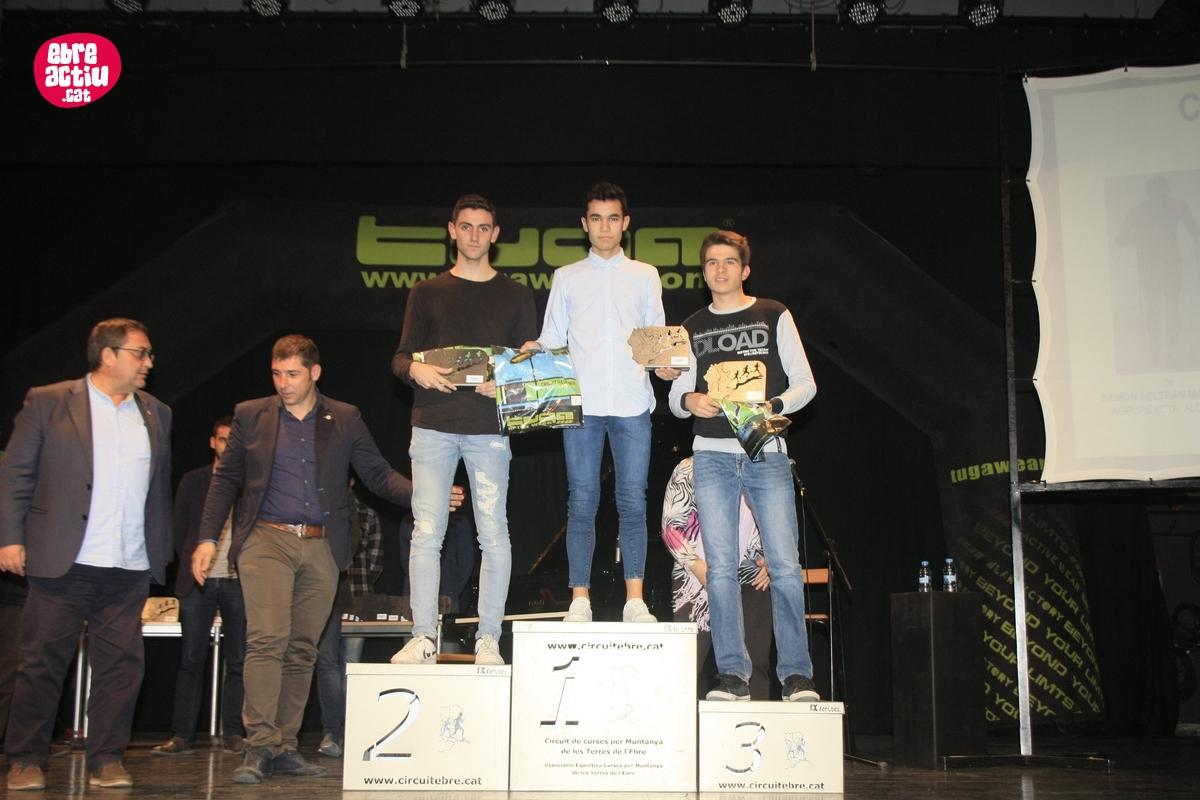 Per finalitzar amb els podis, només quedaven rebre el trofeu els guanyadors absoluts; en dones, la guanyadora del Circuit del 2017 ha estat l’Eva Cristina Llobat (Montbike Amposta), seguida per Sandra Burgués (Borges Trail - AAEET) i Paula Espinach (Maestrazgo - Escuder Tèxtil). En homes el guanyador del Circuit de curses per muntanya de les Terres de l’Ebre del 2017 ha estat Lluisma Mas (Montbike Amposta), en segona posició ha quedat Vicent Herrera (Queral Trail - CEE La Foradada) i el tercer ha estat Pau Vila (Borges Trail - AAEET).