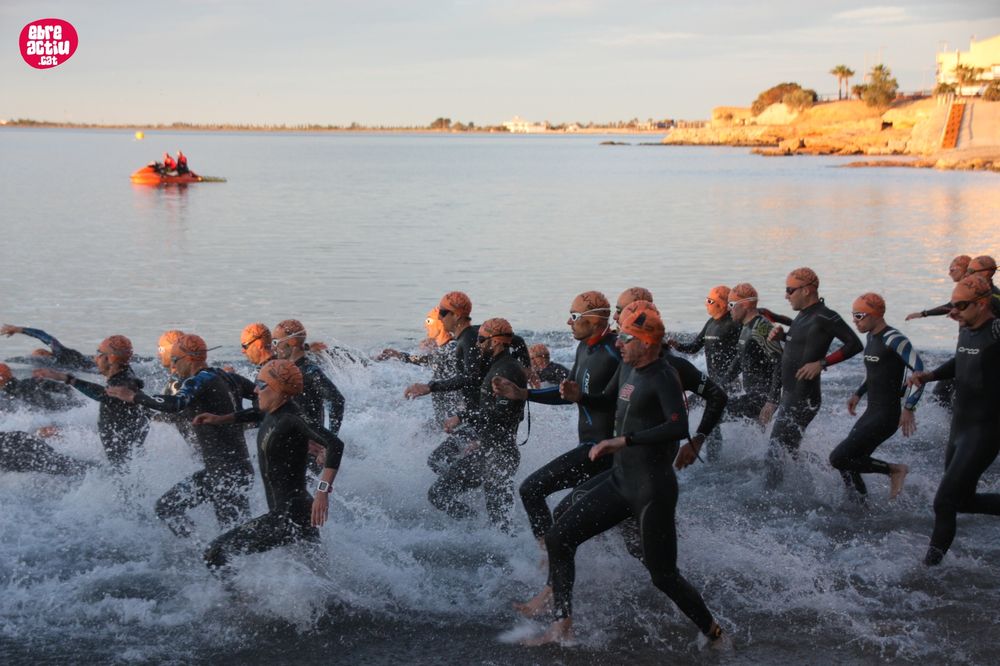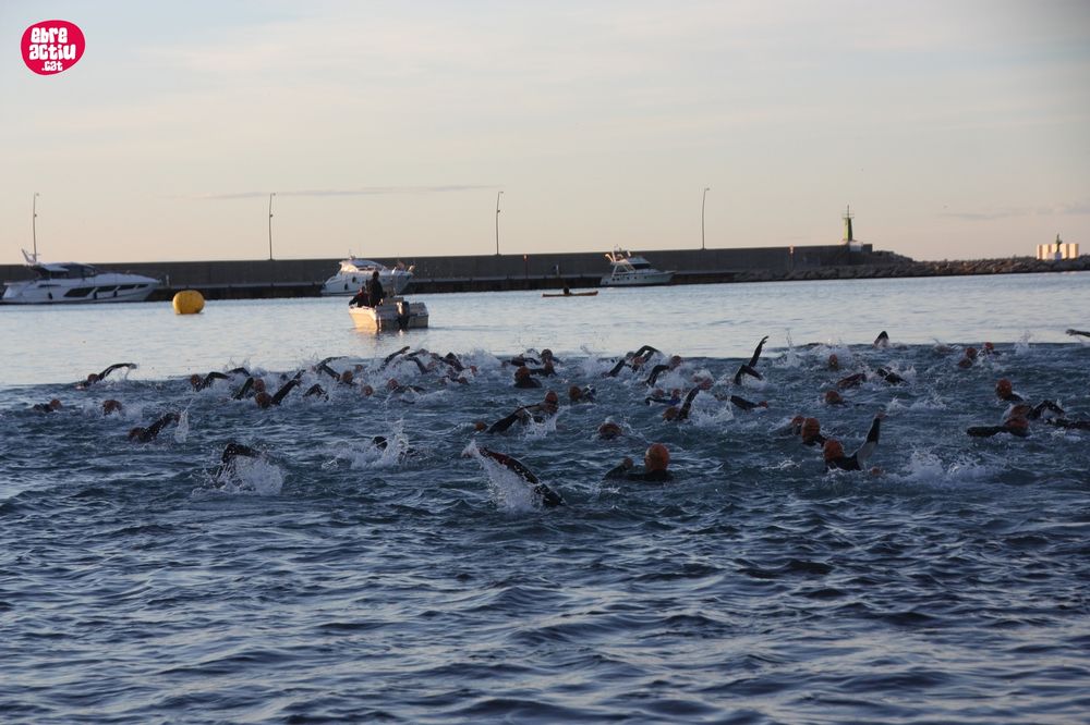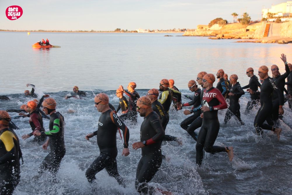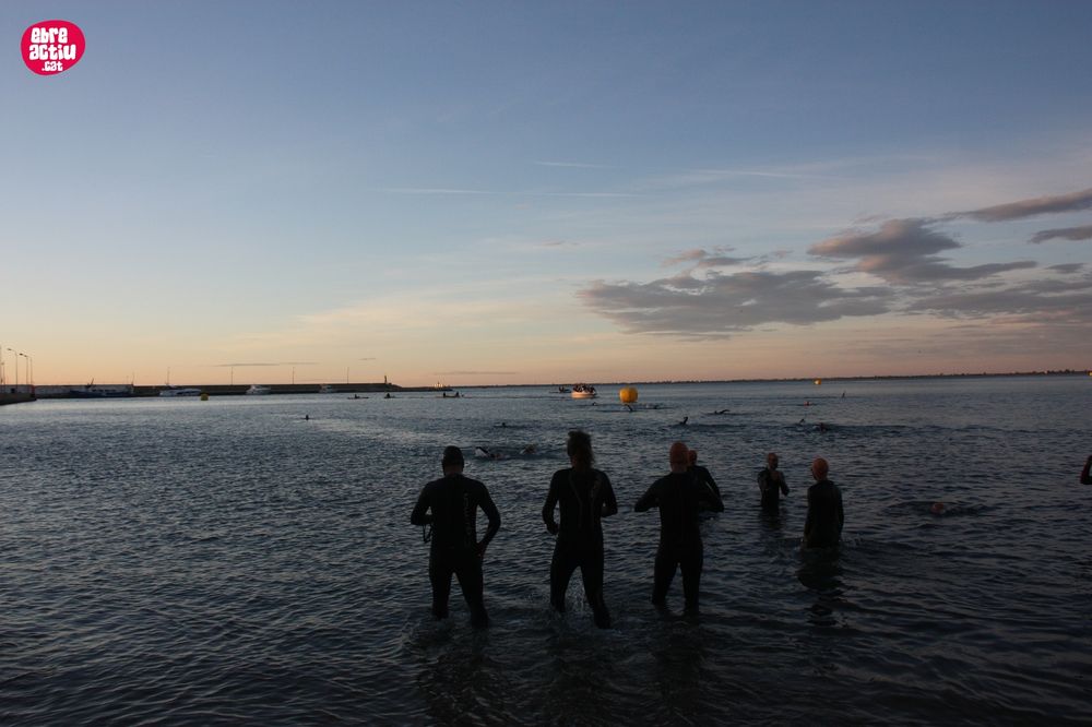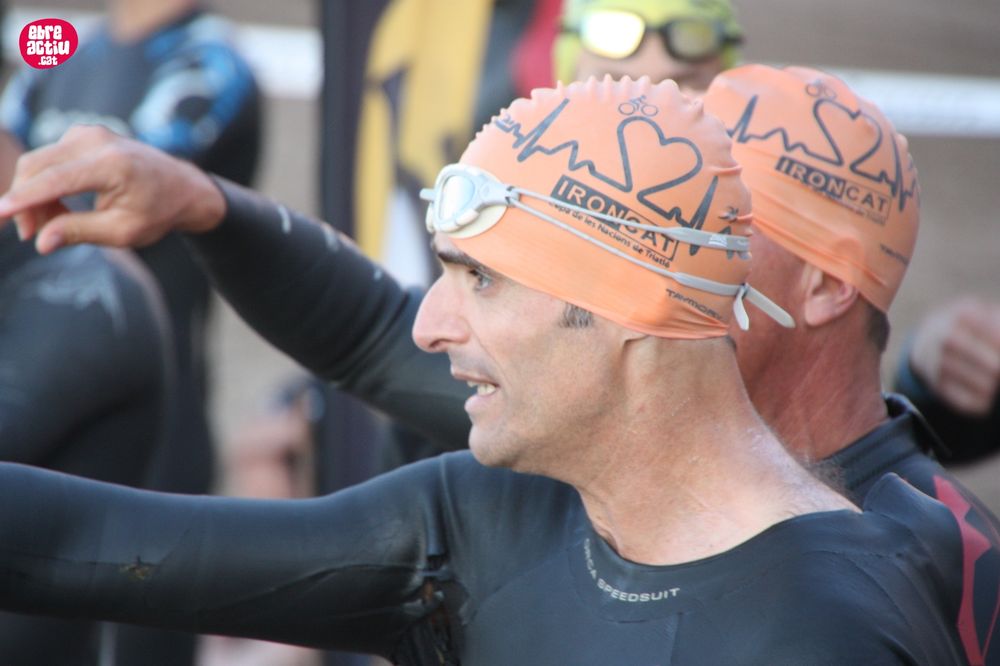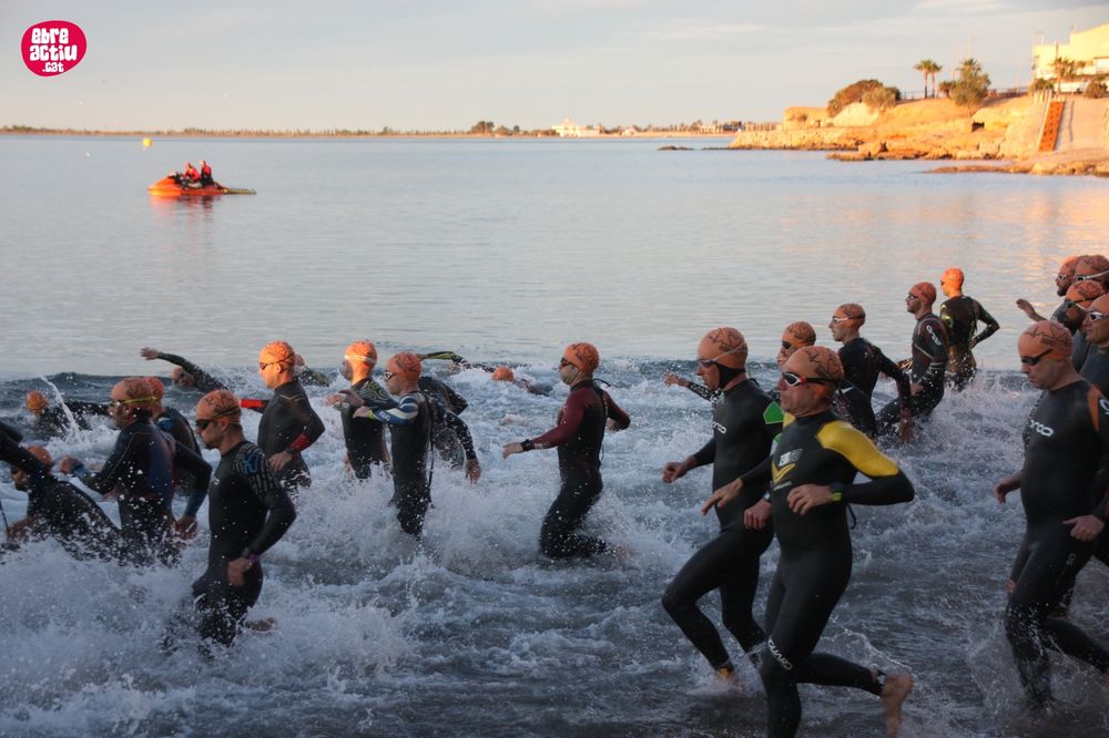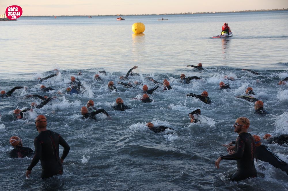 Triatló de llarga distŕncia, disputat a l’Ampolla (Terres de l’Ebre) el 18/5/2019. Fotos del sector de natació i primera transició.