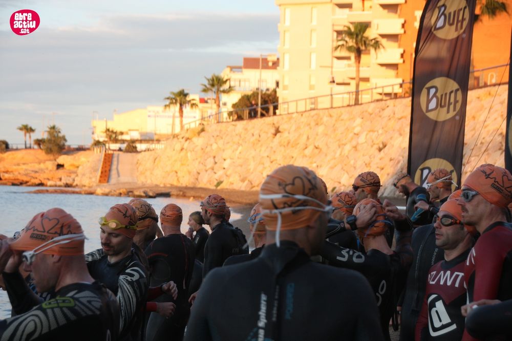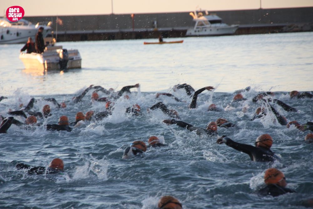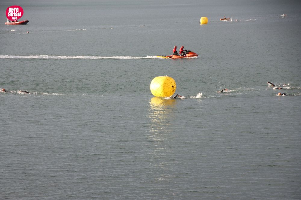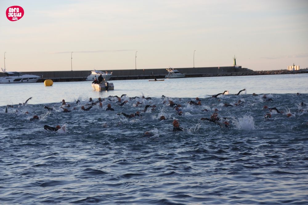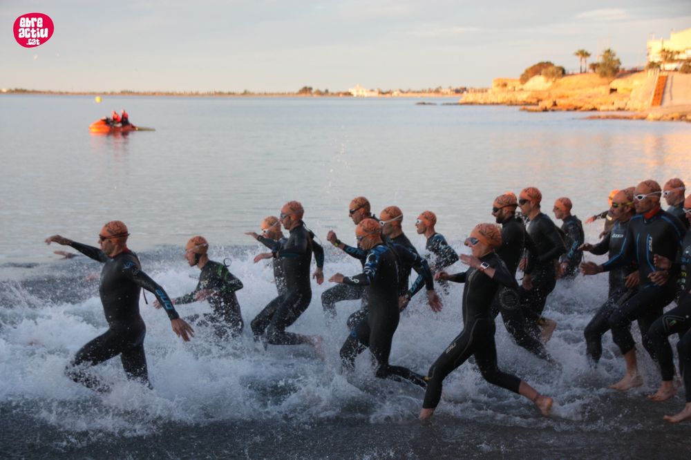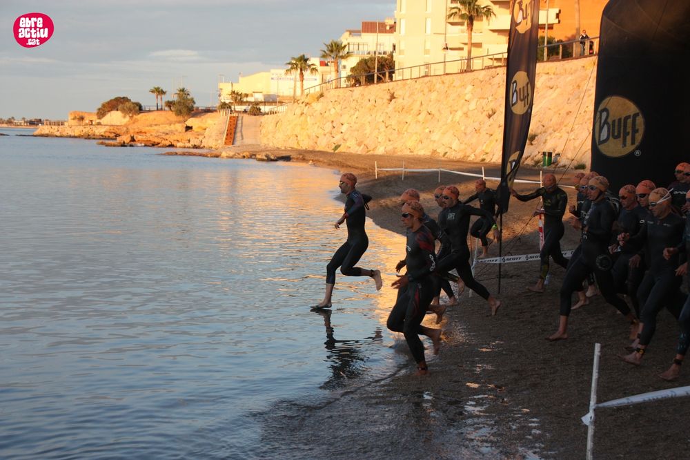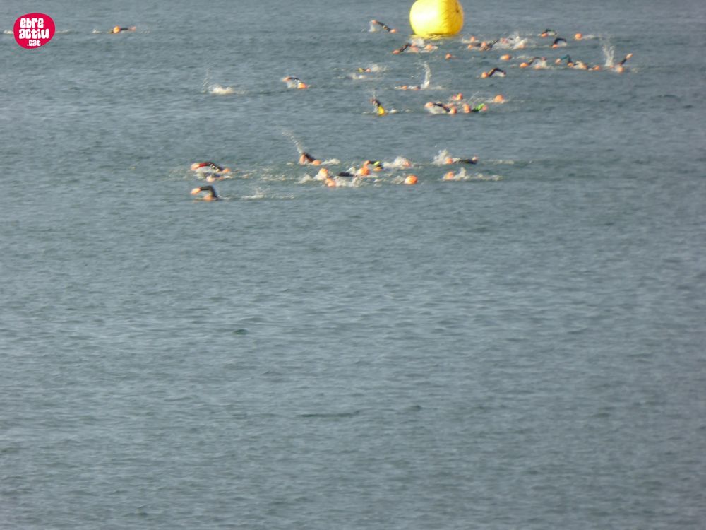 Triatló de llarga distŕncia, disputat a l’Ampolla (Terres de l’Ebre) el 18/5/2019. Fotos del sector de natació i primera transició.