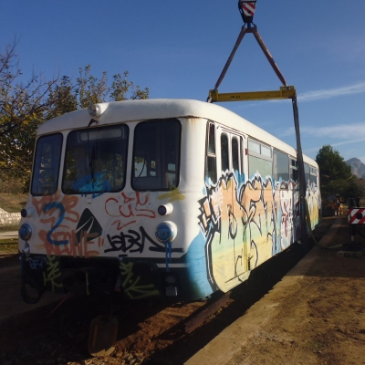 Josep Maria Escoda, gerent de l’empresa Iber Natural Project i membre de l’Associació d’Amics del Ferrocarril de Móra la Nova, va veure una ocasió històrica quan el Ministeri de Foment va treure a subhasta tres ferrobúsos semblants als que un dia van recórrer la línia de la Vall de Zafán i que Adif tenia guardades en un magatzem.