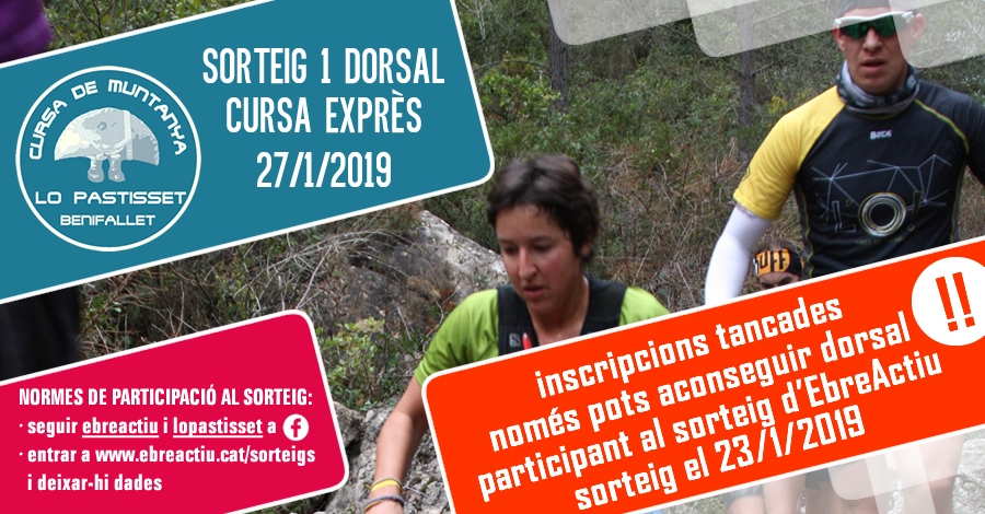 Sorteig d’1 dorsal per la 10a Cursa Exprès Lo Pastisset de Benifallet del 27/1/2019.