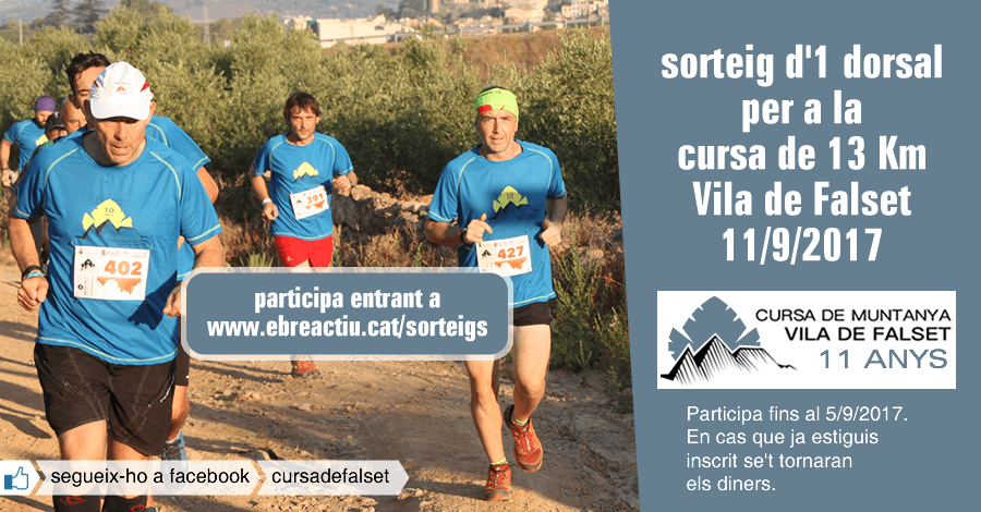 Sorteig d’1 dorsal per a la cursa de 28 Km Vila de Falset 11/9/2017.