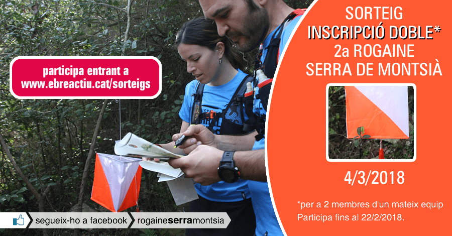 Sorteig d’una inscripció doble* per a la 2a Rogaine Serra de Montsią de Sant Carles de la Rąpita del 4/3/2018.